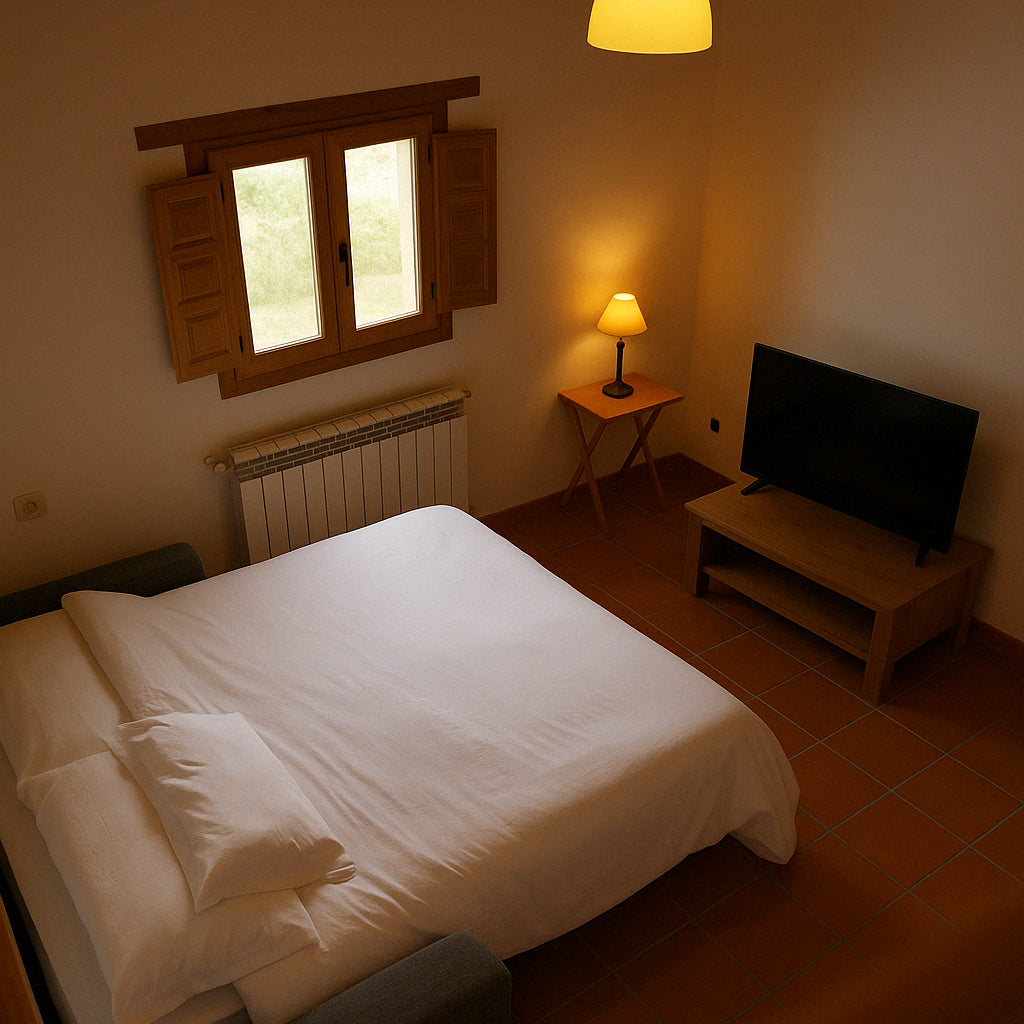 Sube al piso superior y déjate sorprender por una cama doble con colchón de altas prestaciones, ubicada estratégicamente para que disfrutes de unas vistas únicas a la naturaleza y al cielo estrellado. Dormir aquí es como desconectar del mundo… para volver a ti.