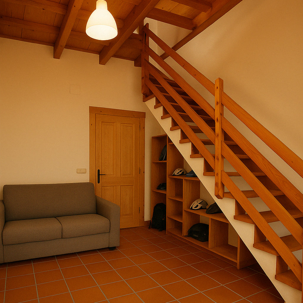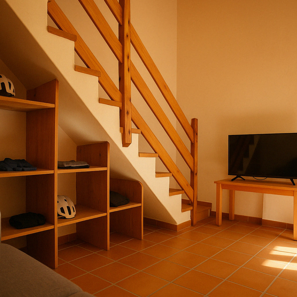 Sube al piso superior y déjate sorprender por una cama doble con colchón de altas prestaciones, ubicada estratégicamente para que disfrutes de unas vistas únicas a la naturaleza y al cielo estrellado. Dormir aquí es como desconectar del mundo… para volver a ti.